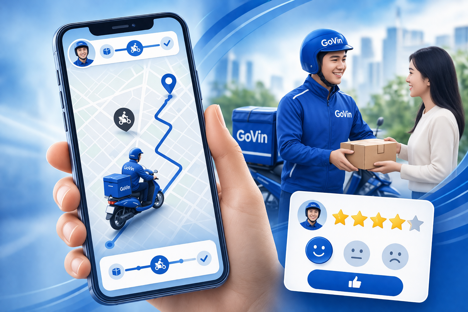 Theo dõi hành trình đơn hàng theo thời gian thực và đánh giá chất lượng dịch vụ sau khi hoàn tất để giúp GoVin ngày càng hoàn thiện hơn.